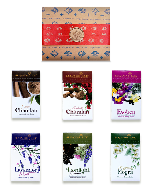 Make celebrations memorable for friends, family, and yourself with our exclusive collection of agarbatti gift sets. Each hamper contains an assortment of handcrafted luxury agarbattis with both traditional and modern fragrances as well as Sugandh Lok’s unique blends. With a Sugandh Lok hamper, you’re gifting divinity and purity to your loved ones.