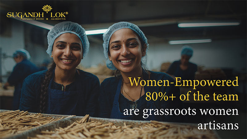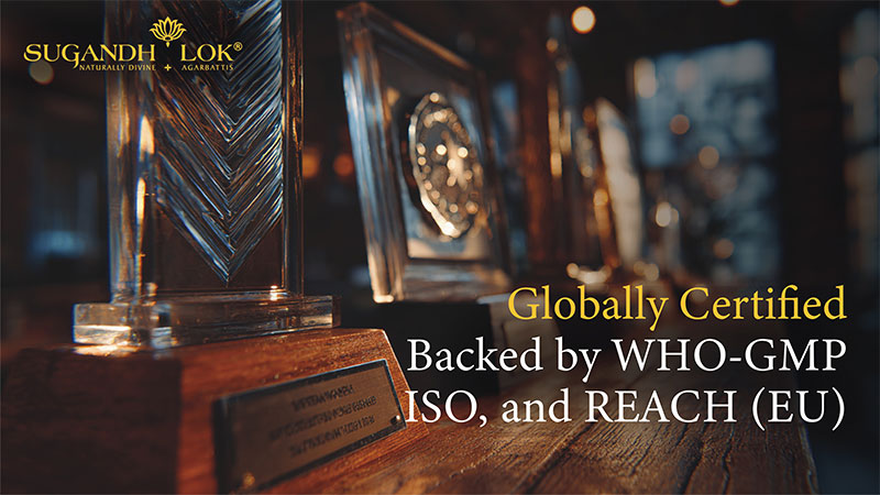 Sugandh Lok emerges from the 80-year heritage of Sarathi International, a name trusted all over the world for incense. Each product is made in Bangalore with pure ingredients, natural oils, and sustainable methods such as temple flower recycling. With women artisans driving production and international certifications such as WHO-GMP and ISO, Sugandh Lok weaves tradition, authenticity, and luxury in each scent.