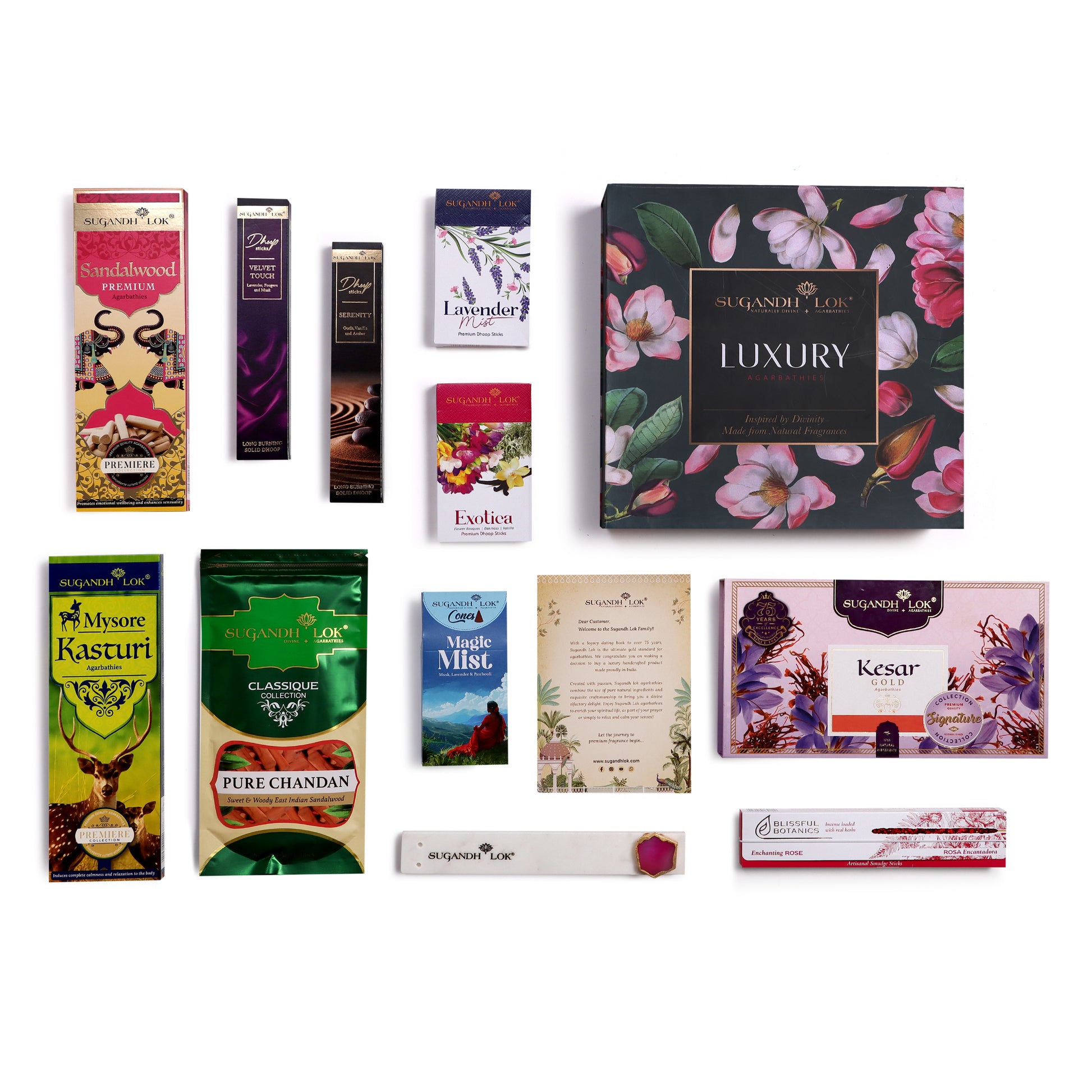Sugandh Lok agarbattis are a divine olfactory delight, crafted carefully from the purest ingredients. With a legacy of 75 years, we bring you a premium range of fragrances developed from recipes handed down through generations. Each world-class fragrance is specially made in divine obeisance to its ancient origins, and will enchant and enhance your every experience.